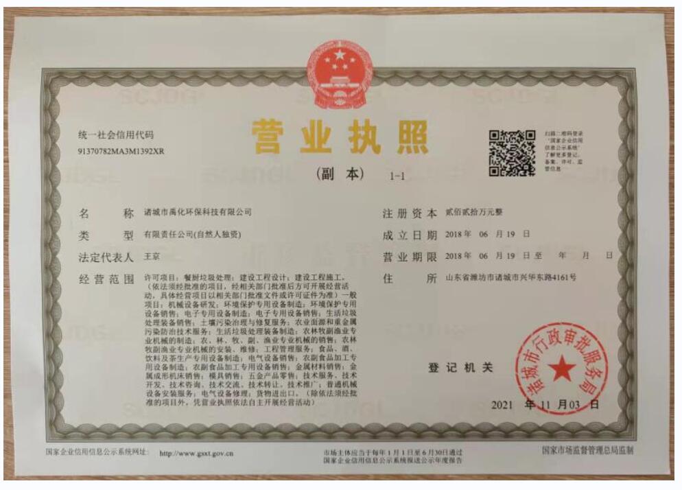 名称:诸城市禹化环保科技有限公司